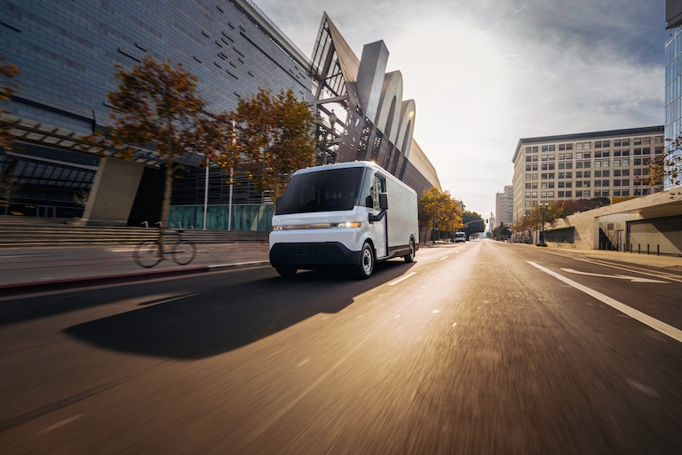The Chevrolet BrightDrop EV Van serves commercial needs with up to 272 miles of range. A large cargo hold supports deliveries, and quiet electric power helps reduce driver fatigue.