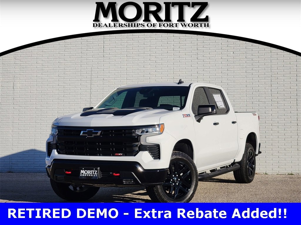 Dealer Adds ($1,300) consist of 6 Chrome Steps. Summit White 2026 Chevrolet Silverado 1500 LT Trail Boss DEMO 4WD 10-Speed Automatic EcoTec3 5.3L V8 Bluetooth, Backup Camera, 10-Speed Automatic, 4WD, Black Leather, 10-Way Power Driver Seat w/Lumbar, 12.3 Multicolor Reconfigurable Digital Display, 120-Volt Bed Mounted Power Outlet, 120-Volt Interior Power Outlet, 2 USB Data Ports, 40/20/40 Front Split-Bench Seat, 6-Speaker Audio System, All-Weather Floor Liner (LPO) (AAK), Auto-Locking Rear Differential, Bluetooth® For Phone, Chevytec Spray-On Black Bedliner, Color-Keyed Carpeting Floor Covering, Convenience Package, Convenience Package II, Deep-Tinted Glass, Dual Exhaust w/Polished Outlets, Dual Rear USB Ports (Charge Only), Dual-Zone Automatic Climate Control, Electric Rear-Window Defogger, Electronic Cruise Control, Electronic Transmission Range Selector Shifter, EZ Lift Power Lock & Release Tailgate, Floor Mounted Center Console, Front Bucket Seats, Front LED Fog Lamps, HD Rear Vision Camera, Heated Driver & Front Outboard Passenger Seats, Heated front seats, Heated Power-Adjustable Outside Mirrors, Heated Steering Wheel, Heavy-Duty Air Filter, High Gloss Black Mirror Caps, Hill Descent Control, Hitch Guidance, Hitch Guidance w/Hitch View, In-Vehicle Trailering System App, Inside Rear-View Mirror w/Tilt, Integrated Trailer Brake Controller, Keyless Open & Start, Leather Package, Leather-Appointed Front Seat Trim, LED Cargo Area Lighting, Manual Tilt/Telescoping Steering Column, OnStar Services Capable, Performance Red Recovery Hooks, Power driver seat, Power Front Windows w/Driver Express Up/Down, Power Front Windows w/Passenger Express Down, Power Rear Windows w/Express Down, Power Sliding Rear Window w/Rear Defogger, Power steering, Power windows, Preferred Equipment Group 2LT, Premium audio system: Chevrolet Infotainment 3 Premium, Premium Bose 7-Speaker Sound System, Protection Package, Rear 60/40 Folding Bench Seat (Folds Up), Rear reading lights, Rear Wheelhouse Liners, Rear window defroster, Remote keyless entry, Remote Vehicle Starter System, SiriusXM w/360L Trial Subscription, Split folding rear seat, Standard Tailgate, Steering Wheel Audio Controls, Steering wheel mounted audio controls, Suspension Package, Teen Driver, Theft Deterrent System (Unauthorized Entry), Tire Pressure Monitoring System, Trailering Package, Universal Home Remote, Up-Level Rear Seat w/Storage Package, Wheels: 20 x 9 High Gloss Black Painted Alum, Wi-Fi Hot Spot Capable, Wireless Charging, Wrapped Steering Wheel. Prices do not include tax, title and license fees.$1000 - Select Inventory Cash Allowance. Exp. 02/02/2026 $1500 - Bonus Cash. Exp. 02/02/2026 $3250 - Customer Cash. Exp. 02/02/2026