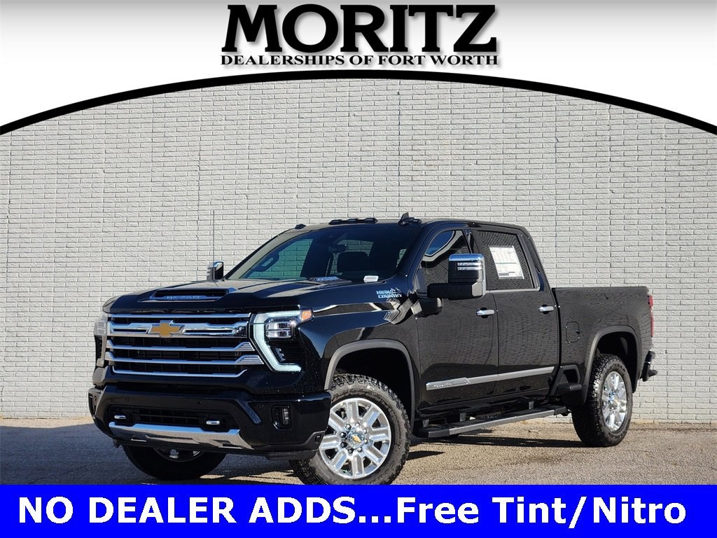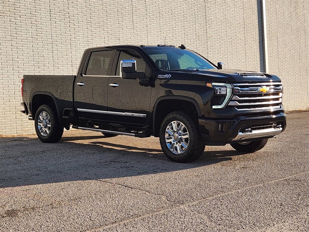 Black 2025 Chevrolet Silverado 2500HD High Country 4WD 10-Speed Automatic Duramax 6.6L V8 Turbodiesel Bluetooth, Backup Camera, 10-Speed Automatic, 4WD, Black Leather, 120-Volt Bed Mounted Power Outlet, 120-Volt Interior Power Outlet, 6 Rectangular Chromed Tubular Assist Steps, 7 Speakers, AM/FM radio: SiriusXM with 360L, Bluetooth® For Phone, BOSE Premium 7-Speaker Sound System, Driver Memory, Front Bucket Seats, Front Carpeted Floor Mats, Front Center Armrest, Garage door transmitter, Genuine wood console insert, Genuine wood dashboard insert, Genuine wood door panel insert, Heated 2nd Row Outboard Seats, Heated front seats, Heated rear seats, Heated Steering Wheel, LED Cargo Area Lighting, Memory seat, Perforated Leather Seat Trim, Polished Exhaust Tip, Power door mirrors, Power driver seat, Power passenger seat, Power steering, Power windows, Premium audio system: Chevrolet Infotainment 3 Premium, Push Button Start, Radio: Chevrolet Infotainment 3 Premium System, Remote keyless entry, Remote Vehicle Starter System, Split folding rear seat, Standard Tailgate, Steering Wheel Audio Controls, Steering wheel mounted audio controls, Suspension Package, Turn signal indicator mirrors, Universal Home Remote, Ventilated front seats, Wheels: 20 8-Spoke Polished, Wireless Charging, Wireless Phone Projection. Prices do not include tax, title and license fees.$1500 - Customer Cash. Exp. 01/02/2026