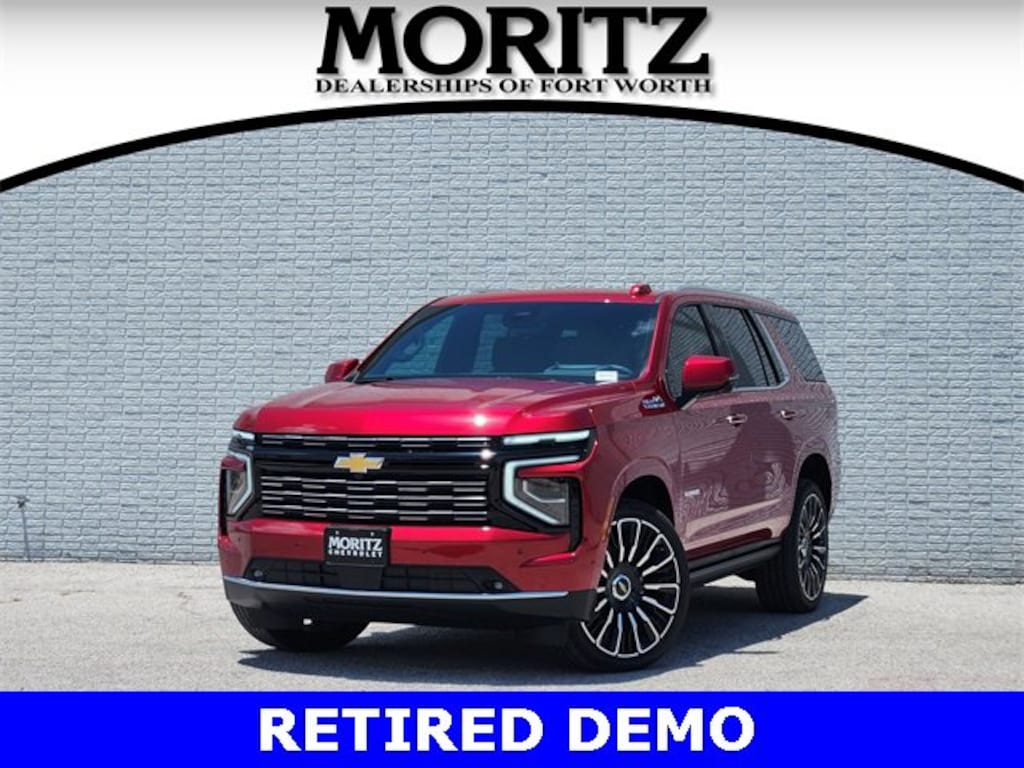 Radiant Red 2025 Chevrolet Tahoe High Country RETIRED DEMO 4WD 10-Speed Automatic with Overdrive EcoTec3 6.2L V8 Bluetooth, Backup Camera, 4WD, Black Leather, 10 Speakers, 15 Diagonal Multi-Color Head-Up Display, 1st & 2nd Row Color-Keyed Carpeted Floor Mats, 1st & 2nd Rows Premium Floor Liners (LPO), 2-Speed Active Electronic AutoTrac Transfer Case, 3-Spoke Wrapped Steering Wheel, 3rd Row 60/40 Power-Folding Split-Bench Seat, 3rd Row All-Weather Floor Liners (LPO), 3rd row seats: split-bench, 4-Way Power Driver Lumbar Seat Adjuster, 4-Way Power Front Passenger Lumbar Seat Adjuster, 8-Way Power Driver Seat Adjuster, 8-Way Power Front Passenger Seat Adjuster, Adaptive suspension, Advanced Trailering Package, Air Conditioning, Air Ride Adaptive Suspension, All-Weather Cargo Mat (LPO), AM/FM radio: SiriusXM with 360L, Auto-leveling suspension, Automatic temperature control, Blind Zone Steering Assist w/Trailering, Bose 10-Speaker Centerpoint Surround Audio Sys Ft, Bright Front & Rear Door Sill Plates, Chrome Door Handles w/Body-Color Strip, Color-Keyed Carpeting Floor Covering, Driver & Front Passenger Heated & Ventilated Seats, Dual Exhaust System, Dual front impact airbags, Dual front side impact airbags, Dual-Pane Power Panoramic Sunroof, Emergency communication system: OnStar and Chevrolet connected services capable, Exterior Parking Camera Rear, Floor Console, Four wheel independent suspension, Front anti-roll bar, Front Bucket Seats, Front Center Armrest, Front dual zone A/C, Front LED Fog Lamps, Front Pedestrian & Bicyclist Braking, Frontal Driver & Outboard Passenger Airbags, Heads-Up Display, Heated 2nd Row Outboard Seats, Heated Driver & Front Passenger Seats, Heated front seats, Heated rear seats, Heated Steering Wheel, High Country Deluxe, Hill Descent Control, Hitch View w/Pan/Zoom Image Adjustment, Inside Rearview Auto-Dimming Rear Camera Mirror, Integrated Trailer Brake Controller, LED Headlamps w/LED Daytime Running Lamps, LED Tail Lamps, License Plate Front Mounting Package, Low tire pressure warning, Magnetic Ride Control Suspension, Max Trailering Package, Memory seat, Memory Settings, Navigation system: Google built-in compatibility (select service plan required, terms and limitations apply), Occupant sensing airbag, Outside Heated Power-Adjustable Mirrors, Overhead airbag, Perforated Leather Seat Trim, Power driver seat, Power passenger seat, Power Release 2nd Row Bucket Seats, Power steering, Power Tilt & Telescopic Steering Column, Power windows, Power-Retractable Assist Steps, Preferred Equipment Group 3LZ, Premium audio system: Chevrolet Infotainment 3 Premium, Premium Liner Protection Package (LPO), Radio data system, Radio: 17.7 Diagonal Advanced Color LCD Display, Rear air conditioning, Rear anti-roll bar, Rear Power Liftgate, Rear window defroster, Remote keyless entry, Remote Start, Set of 4 Wheel Locks (LPO), SiriusXM w/360L Trial Subscription, Smart Trailer Integration Indicator, Speed-sensing steering, Split folding rear seat, Steering wheel memory, Steering wheel mounted audio controls, Traction control, Universal Home Remote, Ventilated front seats, Wheels: 24 x 9.5 Bright Machined, Wireless Phone Charging.