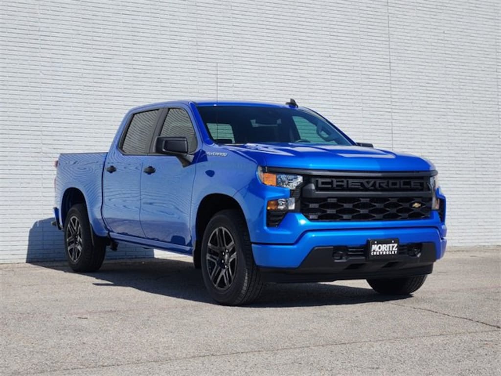 Blue 2026 Chevrolet Silverado 1500 Custom RWD 8-Speed Automatic 2.7L I4 Turbocharged DOHC 16V LEV3-SULEV30 310hp Bluetooth, Backup Camera, 8-Speed Automatic, Jet Blk Clth Cloth, 6-Speaker Audio System, AM/FM radio: SiriusXM, Custom Convenience Package, Custom Value Package, Electric Rear-Window Defogger, High Capacity Suspension Package, Hitch Guidance, LED Cargo Area Lighting, Premium audio system: Chevrolet Infotainment 3, Radio data system, Radio: Chevrolet Infotainment 3 System, Remote keyless entry, Remote Vehicle Starter System, SiriusXM Trial Subscription, Trailering Package, Wheels: 20 x 9 Bright Silver Painted Aluminum. Prices do not include tax, title and license fees.$1000 - Bonus Cash. Exp. 01/02/2026 $3000 - Customer Cash. Exp. 01/02/2026