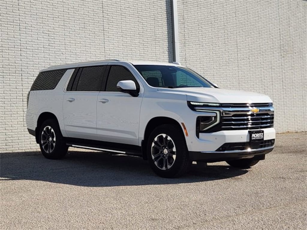 Summit White 2026 Chevrolet Suburban LT RWD 10-Speed Automatic with Overdrive EcoTec3 5.3L V8 Bluetooth, Backup Camera, 2-Way Driver Power Lumbar Seat Adjuster, 2-Way Front Passenger Power Lumbar Seat Adjuster, 3rd row seats: split-bench, 6-Speaker Audio System, 8-Way Power Driver Seat Adjuster, 8-Way Power Front Passenger Seat Adjuster, Air Conditioning, AM/FM radio: SiriusXM with 360L, Automatic temperature control, Exterior Parking Camera Rear, Front Bucket Seats, Front Center Armrest, Front dual zone A/C, Heated Driver & Front Passenger Seats, Heated front seats, Leather-Appointed Seating, Memory seat, Navigation system: Google built-in compatibility (select service plan required, terms and limitations apply), Power driver seat, Power passenger seat, Power steering, Power windows, Radio data system, Radio: 17.7 Diagonal Advanced Color LCD Display, Rear air conditioning, Rear Power Liftgate, Rear window defroster, Remote keyless entry, SiriusXM w/360L Trial Subscription, Split folding rear seat, Steering wheel mounted audio controls, Wheels: 18 x 8.5 Bright Silver Painted Aluminum, Wireless Apple CarPlay/Wireless Android Auto.