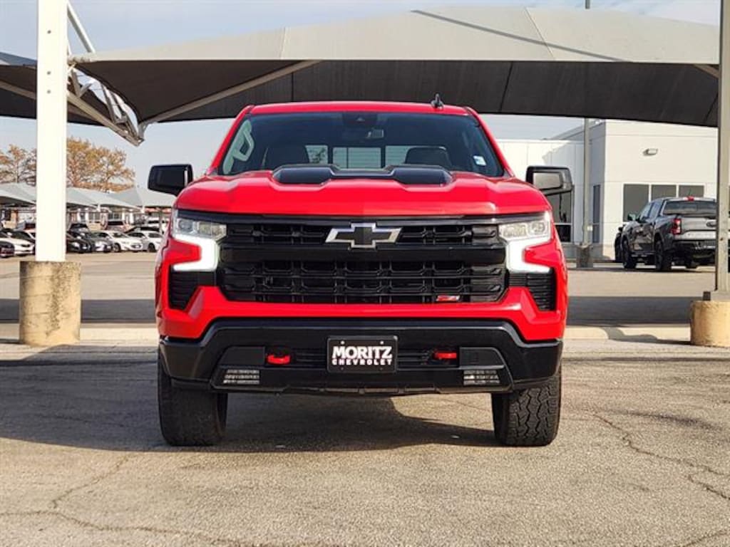 Certified. Red Hot 2024 Chevrolet Silverado 1500 LT Trail Boss 4WD 10-Speed Automatic EcoTec3 5.3L V8 Bluetooth, Backup Camera, The Moritz Promise LIMITED LIFETIME POWERTRAIN PROTECTION PLAN See dealer for details, 10-Speed Automatic, 4WD, Black Leather, 10-Way Power Driver Seat w/Lumbar, 12.3" Multicolor Reconfigurable Digital Display, 120-Volt Bed Mounted Power Outlet, 120-Volt Interior Power Outlet, 6-Speaker Audio System, All-Weather Floor Liner (LPO) (AAK), Alloy wheels, Auto-Locking Rear Differential, Automatic Emergency Braking, Auxiliary External Transmission Oil Cooler, Bluetoothî For Phone, Brake assist, Chevrolet Connected Access Capable, Color-Keyed Carpeting Floor Covering, Convenience Package, Convenience Package II, Deep-Tinted Glass, Dual Exhaust w/Polished Outlets, Dual Rear USB Ports (Charge Only), Dual-Zone Automatic Climate Control, Electric Rear-Window Defogger, Electrical Steering Column Lock, Electronic Cruise Control, Electronic Stability Control, Electronic Transmission Range Selector Shifter, External Engine Oil Cooler, EZ Lift Power Lock & Release Tailgate, Following Distance Indicator, Forward Collision Alert, Front anti-roll bar, Front LED Fog Lamps, Front Pedestrian Braking, Front wheel independent suspension, Fully automatic headlights, HD Rear Vision Camera, Heated Driver & Front Outboard Passenger Seats, Heated Power-Adjustable Outside Mirrors, Heated Steering Wheel, Heated steering wheel, Heavy-Duty Air Filter, High Gloss Black Mirror Caps, Hill Descent Control, Hitch Guidance, Hitch Guidance w/Hitch View, Illuminated entry, In-Vehicle Trailering System App, Inside Rear-View Mirror w/Tilt, Integrated Trailer Brake Controller, IntelliBeam Automatic High Beam On/Off, Keyless Open & Start, Leather Package, Leather-Appointed Front Seat Trim, LED Cargo Area Lighting, Multi-Flex Tailgate, OnStar & Chevrolet Connected Services Capable, Performance Red Recovery Hooks, Power Front Windows w/Driver Express Up/Down, Power Front Windows w/Passenger Express Down, Power Rear Windows w/Express Down, Power Sliding Rear Window w/Rear Defogger, Preferred Equipment Group 2LT, Premium Bose 7-Speaker Sound System, Rear 60/40 Folding Bench Seat (Folds Up), Rear step bumper, Remote keyless entry, Remote Vehicle Starter System, Security system, SiriusXM w/360L, Speed-sensing steering, Standard Tailgate, Steering Wheel Audio Controls, Steering wheel mounted audio controls, Suspension Package, Telescoping steering wheel, Theft Deterrent System (Unauthorized Entry), Traction control, Trailering Package, Universal Home Remote, Up-Level Rear Seat w/Storage Package, Wi-Fi Hot Spot Capable, Wireless Charging, Wrapped Steering Wheel. Odometer is 10945 miles below market average! Certification Program Details: 126-point inspection. Vehicle must be 10 model years old or newer, and the vehicle must have under 100,000 miles at the time of sale. Comes with 12 month/12,000 mile limited bumper to bumper warranty.Certified Pre-OwnedCertified Pre-OwnedCertified Pre-OwnedCertified Pre-OwnedCertified Pre-OwnedCertified Pre-OwnedCertified Pre-OwnedCertified Pre-OwnedCertified Pre-OwnedCertified Pre-OwnedCertified Pre-Owned