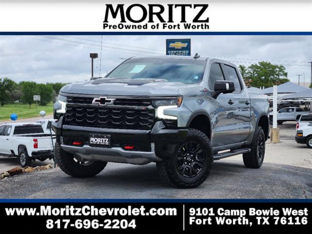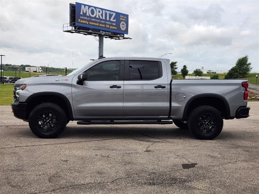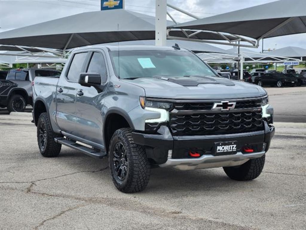 Certified. Sterling Gray Metallic 2024 Chevrolet Silverado 1500 ZR2 4WD 10-Speed Automatic 3.0L I6 Bluetooth, Backup Camera, The Moritz Promise LIMITED LIFETIME POWERTRAIN PROTECTION PLAN See dealer for details, 10-Speed Automatic, 4WD, Jet Black/Graystone Leather, 10-Way Power Driver Seat w/Lumbar, 10-Way Power Passenger Seat Adjuster w/Lumbar, 12.3" Multicolor Reconfigurable Digital Display, 120-Volt Bed Mounted Power Outlet, 120-Volt Interior Power Outlet, 15" Diagonal Multicolor Head-Up Display, 2 USB Data Ports, 2nd Row Heated Outboard Seats, Adaptive Cruise Control, All-Weather Floor Liner (LPO), Auto-Dimming Inside Rear-View Mirror, Bed View Camera, Bluetoothî For Phone, Brake assist, Chevrolet Connected Access Capable, Chevytec Spray-On Black Bedliner, Color-Keyed Carpeting Floor Covering, Deep-Tinted Glass, Driver Memory, Dual Rear USB Ports (Charge Only), Electric Rear-Window Defogger, Electrical Steering Column Lock, Electronic Cruise Control, Electronic Stability Control, Electronic Transmission Range Selector Shifter, EZ Lift Power Lock & Release Tailgate, Floor Mounted Center Console, Following Distance Indicator, Forward Collision Alert, Front anti-roll bar, Front Bucket Seats, Front LED Fog Lamps, Front Rain-Sensing Wipers, Front wheel independent suspension, Fully automatic headlights, Garage door transmitter, HD Surround Vision, Heated Driver & Front Outboard Passenger Seats, Heated Steering Wheel, Heavy-Duty Air Filter, High Gloss Black Mirror Caps, Hill Descent Control, Hitch Guidance, Hitch Guidance w/Hitch View, Illuminated entry, In-Vehicle Trailering System App, Integrated Trailer Brake Controller, IntelliBeam Automatic High Beam On/Off, Keyless Open & Start, Lane Keep Assist w/Lane Departure Warning, LED Cargo Area Lighting, Manual Tilt/Telescoping Steering Column, Multi-Flex Tailgate, OnStar & Chevrolet Connected Services Capable, Outside Heated Power-Adjustable Mirrors, Perforated Leather Seat Trim, Performance Red Recovery Hooks, Perimeter Lighting, Power Front Passenger Windows w/Express Up/Down, Power Front Windows w/Driver Express Up/Down, Power Rear Windows w/Express Down, Power Sliding Rear Window w/Rear Defogger, Power Sunroof, Power Tilt & Telescoping Steering Column, Preferred Equipment Group 3LT, Premium Bose 7-Speaker Sound System, Rear Camera Mirror, Rear Cross Traffic Braking, Rear Park Assist, Rear Pedestrian Alert, Rear step bumper, Rear Wheelhouse Liners, Remote Vehicle Starter System, Safety Alert Seat, SiriusXM w/360L, Speed-sensing steering, Standard Tailgate, Steering Wheel Audio Controls, Steering wheel mounted audio controls, Technology Package, Telescoping steering wheel, Theft Deterrent System (Unauthorized Entry), Traction control, Trailer Camera Provisions, Trailer Side Blind Zone Alert, Trailering Package, Universal Home Remote, Up-Level Rear Seat w/Storage Package, Ventilated Driver & Front Passenger Seats, Wi-Fi Hot Spot Capable, Wrapped Steering Wheel, ZR2 Suspension Package. Certification Program Details: 126-point inspection. Vehicle must be 10 model years old or newer, and the vehicle must have under 100,000 miles at the time of sale. Comes with 12 month/12,000 mile limited bumper to bumper warranty.