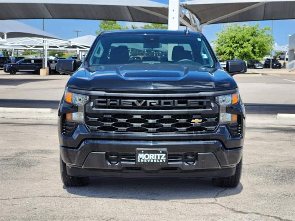 Certified. Black 2023 Chevrolet Silverado 1500 Custom RWD 8-Speed Automatic 2.7L Turbo Bluetooth, Backup Camera, The Moritz Promise LIMITED LIFETIME POWERTRAIN PROTECTION PLAN See dealer for details, 8-Speed Automatic, Jet Black Cloth, 10-Way Power Driver Seat w/Lumbar, 120-Volt Bed Mounted Power Outlet, 120-Volt Instrument Panel Power Outlet, 3.5" Monochromatic Display Driver Info Center, Alloy wheels, Apple CarPlay/Android Auto, Bluetoothî For Phone, Brake assist, Chevrolet Connected Access Capable, Color-Keyed Carpeting Floor Covering, Compass, Custom Convenience Package, Custom Value Package, Deep-Tinted Glass, Dual Rear USB Ports (Charge Only), Electric Rear-Window Defogger, Electrical Steering Column Lock, Electronic Cruise Control, Electronic Stability Control, EZ Lift Power Lock & Release Tailgate, Following Distance Indicator, Forward Collision Alert, Front anti-roll bar, Front Frame-Mounted Black Recovery Hooks, Front Rubberized Vinyl Floor Mats, Front wheel independent suspension, Fully automatic headlights, HD Rear Vision Camera, High Capacity Suspension Package, Hitch Guidance, Illuminated entry, IntelliBeam Automatic High Beam On/Off, Lane Keep Assist w/Lane Departure Warning, LED Cargo Area Lighting, Manual Tilt Wheel Steering Column, OnStar & Chevrolet Connected Services Capable, Power Front Windows w/Driver Express Up/Down, Power Front Windows w/Passenger Express Down, Power Rear Windows w/Express Down, Preferred Equipment Group 1CX, Rear 60/40 Folding Bench Seat (Folds Up), Rear Rubberized-Vinyl Floor Mats, Rear step bumper, Remote Keyless Entry, Remote Vehicle Starter System, SiriusXM Radio, Speed-sensing steering, Standard Tailgate, Theft Deterrent System (Unauthorized Entry), Traction control, Trailering Package, Wi-Fi Hot Spot Capable, Wireless Phone Projection. Odometer is 17183 miles below market average! Certification Program Details: 126-point inspection. Vehicle must be 10 model years old or newer, and the vehicle must have under 100,000 miles at the time of sale. Comes with 12 month/12,000 mile limited bumper to bumper warranty.