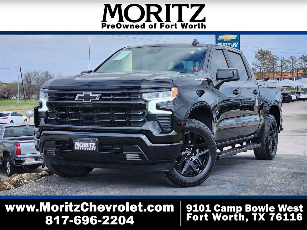 Certified. Black 2023 Chevrolet Silverado 1500 RST RWD 10-Speed Automatic EcoTec3 5.3L V8 Bluetooth, Backup Camera, The Moritz Promise LIMITED LIFETIME POWERTRAIN PROTECTION PLAN See dealer for details, 10-Speed Automatic, Black Cloth, 10-Way Power Driver Seat w/Lumbar, 12.3 Multicolor Reconfigurable Digital Display, 120-Volt Bed Mounted Power Outlet, 120-Volt Instrument Panel Power Outlet, 6-Speaker Audio System, All-Star Edition, Apple CarPlay/Android Auto, Auto-Locking Rear Differential, Automatic temperature control, Auxiliary External Transmission Oil Cooler, Bluetooth® For Phone, Chevrolet Connected Access Capable, Color-Keyed Carpeting Floor Covering, Compass, Convenience Package, Convenience Package II, Deep-Tinted Glass, Dual Rear USB Ports (Charge Only), Dual-Zone Automatic Climate Control, Electric Rear-Window Defogger, Electrical Steering Column Lock, Electronic Cruise Control, Electronic Stability Control, External Engine Oil Cooler, EZ Lift Power Lock & Release Tailgate, Following Distance Indicator, Forward Collision Alert, Front anti-roll bar, Front Frame-Mounted Black Recovery Hooks, Front LED Fog Lamps, Front Pedestrian Braking, Front Rubberized Vinyl Floor Mats, Fully automatic headlights, HD Rear Vision Camera, Heated Driver & Front Outboard Passenger Seats, Heated Power-Adjustable Outside Mirrors, Heated Steering Wheel, High Capacity Suspension Package, High Gloss Black Mirror Caps, Hitch Guidance, Hitch Guidance w/Hitch View, Illuminated entry, Inside Rear-View Mirror w/Tilt, Integrated Trailer Brake Controller, Keyless Open & Start, LED Cargo Area Lighting, OnStar & Chevrolet Connected Services Capable, Power Front Windows w/Driver Express Up/Down, Power Front Windows w/Passenger Express Down, Power Rear Windows w/Express Down, Power Sliding Rear Window w/Rear Defogger, Preferred Equipment Group 1SP, Premium Bose 7-Speaker Sound System, Rear 60/40 Folding Bench Seat (Folds Up), Rear Rubberized-Vinyl Floor Mats, Rear step bumper, Remote Vehicle Starter System, SiriusXM w/360L, Speed-sensing steering, Standard Tailgate, Steering Wheel Audio Controls, Telescoping steering wheel, Theft Deterrent System (Unauthorized Entry), Trailering App, Trailering Package, Universal Home Remote, Wi-Fi Hot Spot Capable, Wireless Phone Projection, Wrapped Steering Wheel.