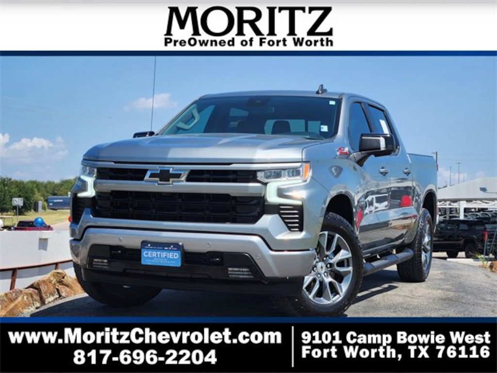 Certified. Sterling Gray Metallic 2024 Chevrolet Silverado 1500 RST 4WD 10-Speed Automatic EcoTec3 5.3L V8 Bluetooth, Backup Camera, The Moritz Promise LIMITED LIFETIME POWERTRAIN PROTECTION PLAN See dealer for details, 10-Speed Automatic, 4WD, Black Cloth, 10-Way Power Driver Seat w/Lumbar, 12.3 Multicolor Reconfigurable Digital Display, 120-Volt Bed Mounted Power Outlet, 120-Volt Interior Power Outlet, 6-Speaker Audio System, All-Star Edition, Auto-Locking Rear Differential, Automatic Emergency Braking, Automatic temperature control, Auxiliary External Transmission Oil Cooler, Bluetooth® For Phone, Chevrolet Connected Access Capable, Chevytec Spray-On Black Bedliner, Color-Keyed Carpeting Floor Covering, Convenience Package, Convenience Package II, Deep-Tinted Glass, Dual Exhaust w/Polished Outlets, Dual Rear USB Ports (Charge Only), Dual-Zone Automatic Climate Control, Electric Rear-Window Defogger, Electrical Steering Column Lock, Electronic Cruise Control, Electronic Transmission Range Selector Shifter, External Engine Oil Cooler, EZ Lift Power Lock & Release Tailgate, Following Distance Indicator, Forward Collision Alert, Front Frame-Mounted Black Recovery Hooks, Front LED Fog Lamps, Front Rubberized Vinyl Floor Mats, Fully automatic headlights, HD Rear Vision Camera, HD Surround Vision, Heated Driver & Front Outboard Passenger Seats, Heated Power-Adjustable Outside Mirrors, Heated Steering Wheel, Heavy-Duty Air Filter, High Gloss Black Mirror Caps, Hill Descent Control, Hitch Guidance, Hitch Guidance w/Hitch View, Illuminated entry, In-Vehicle Trailering System App, Inside Rear-View Mirror w/Tilt, Integrated Trailer Brake Controller, Keyless Open & Start, LED Cargo Area Lighting, Off-Road Suspension, OnStar & Chevrolet Connected Services Capable, Perimeter Lighting, Power Front Windows w/Driver Express Up/Down, Power Front Windows w/Passenger Express Down, Power Rear Windows w/Express Down, Power Sliding Rear Window w/Rear Defogger, Preferred Equipment Group 1SP, Premium Bose 7-Speaker Sound System, Protection Package, Rear 60/40 Folding Bench Seat (Folds Up), Rear Cross Traffic Braking, Rear Pedestrian Alert, Rear Rubberized-Vinyl Floor Mats, Rear step bumper, Rear Wheelhouse Liners, Remote Vehicle Starter System, Safety Package, Security system, SiriusXM w/360L, Speed-sensing steering, Standard Suspension Package, Standard Tailgate, Steering Wheel Audio Controls, Steering wheel mounted audio controls, Telescoping steering wheel, Texas Edition Badging, Texas Edition Plus, Theft Deterrent System (Unauthorized Entry), Traction control, Trailer Camera Provisions, Trailer Side Blind Zone Alert, Trailering Package, Ultrasonic Front & Rear Park Assist, Universal Home Remote, Wheels: 20 x 9 Painted Aluminum, Wi-Fi Hot Spot Capable, Wrapped Steering Wheel, Z71 Off-Road Package.Recent Arrival!Chevrolet Certified Pre-Owned Details:* Powertrain Limited Warranty: 72 Month/100,000 Mile (whichever comes first) from original in-service date* 24 months/24,000 miles (whichever comes first) Certified Pre-Owned Scheduled Maintenance Plan and 3 days/150 miles (whichever comes first) Vehicle Exchange Program. SiriusXM 3-month trial subscription.* 172 Point Inspection* Warranty Deductible: $0* Limited Warranty: 12 Month/12,000 Mile (whichever comes first) from certified purchase date* Vehicle History* Roadside Assistance* Transferable Warranty