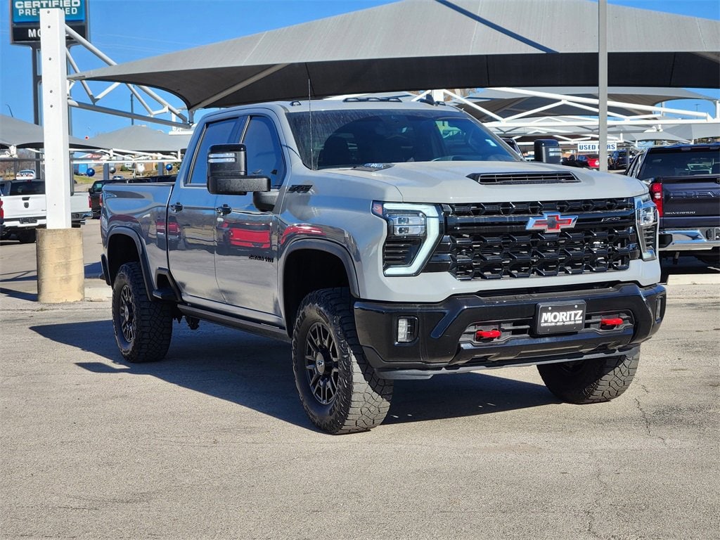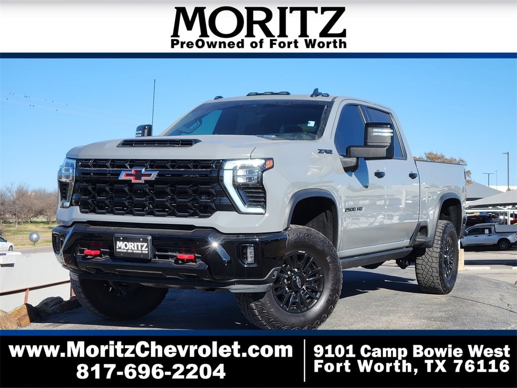 Certified. Slate Gray Metallic 2024 Chevrolet Silverado 2500HD ZR2 4WD 10-Speed Automatic Duramax 6.6L V8 Turbodiesel Bluetooth, Backup Camera, The Moritz Promise LIMITED LIFETIME POWERTRAIN PROTECTION PLAN See dealer for details, 10-Speed Automatic, 4WD, Jet Black/Graystone Leather, 10-Way Power Driver Seat Adjuster w/Lumbar, 10-Way Power Passenger Seat Adjuster w/Lumbar, 120-Volt Bed Mounted Power Outlet, 120-Volt Interior Power Outlet, 15 Diagonal Multicolor Head-Up Display, 170 Amp Alternator, Adaptive Cruise Control, All-Weather Floor Liners (LPO), Apple CarPlay/Android Auto, Auto-Dimming Inside Rear-View Mirror, Automatic temperature control, Bed View Camera w/2 Trailer Camera Provisions, Black Chevytec Spray-On Bedliner, Black Name Plates (LPO), Black Tailgate Lettering (LPO), Bluetooth® For Phone, BOSE Premium 7-Speaker Sound System, Brake assist, Chevrolet Connected Access Capable, Color-Keyed Carpeting Floor Covering, Compass, Dark Essentials Package (LPO), Deep-Tinted Glass, Durabed Pickup Bed, Electric Rear-Window Defogger, Electronic Cruise Control w/Set & Resume Speed, Electronic Stability Control, EZ Lift Power Lock & Release Tailgate, Front anti-roll bar, Front Bucket Seats, Front LED Fog Lamps, Front Rain-Sensing Wipers, Fully automatic headlights, Garage door transmitter, Heated 2nd Row Outboard Seats, Heated Driver & Front Outboard Passenger Seating, Heated Steering Wheel, High Gloss Black Mirror Caps, Hitch Guidance w/Hitch View, Illuminated entry, In-Vehicle Trailering App System, Keyless Open & Start, LED Cargo Area Lighting, LED Smoked Amber Roof Marker Lamps, Manual Tilt & Telescoping Steering Column, Multi-Flex Tailgate, OnStar & Chevrolet Connected Services Capable, Perforated Leather Seat Trim, Power Door Locks, Power Front Windows w/Driver Express Up/Down, Power Front Windows w/Passenger Express Up/Down, Power Rear Windows w/Express Down, Power Sliding Rear Window w/Defogger, Power Sunroof, Power-Retractable Black Assist Steps, Preferred Equipment Group 3LT, Push Button Start, Pwr Up/Down Tailgate Function w/Pwr Lock & Release, Rear Camera Mirror, Rear Cross Traffic Alert, Rear Park Assist, Rear Wheelhouse Liners, Remote Vehicle Starter System, Security system, SiriusXM w/360L, Speed-sensing steering, Standard Tailgate, Steering Wheel Audio Controls, Steering wheel mounted audio controls, Technology Package, Telescoping steering wheel, Traction control, Trailer Camera Provisions, Unauthorized Entry Theft-Deterrent System, Universal Home Remote, Up-Level Rear Seat w/Storage Package, Ventilated Driver & Front Passenger Seats, Wi-Fi Hotspot Capable, Wireless Charging, Wireless Phone Projection, Wrapped Steering Wheel, ZR2 Suspension Package.Odometer is 11414 miles below market average!Chevrolet Certified Pre-Owned Details:* 172 Point Inspection* Warranty Deductible: $0* Limited Warranty: 12 Month/12,000 Mile (whichever comes first) from certified purchase date* Powertrain Limited Warranty: 72 Month/100,000 Mile (whichever comes first) from original in-service date* Vehicle History* Roadside Assistance* Transferable Warranty* 24 months/24,000 miles (whichever comes first) Certified Pre-Owned Scheduled Maintenance Plan and 3 days/150 miles (whichever comes first) Vehicle Exchange Program. SiriusXM 3-month trial subscription.
