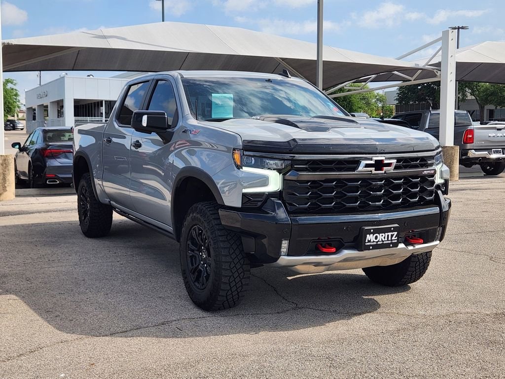 Certified. Slate Gray Metallic 2025 Chevrolet Silverado 1500 ZR2 4WD 10-Speed Automatic EcoTec3 6.2L V8 Bluetooth, Backup Camera, The Moritz Promise LIMITED LIFETIME POWERTRAIN PROTECTION PLAN See dealer for details, 10-Speed Automatic, 4WD, Jet Black/Graystone Leather, 10-Way Power Driver Seat w/Lumbar, 10-Way Power Passenger Seat Adjuster w/Lumbar, 12.3 Multicolor Reconfigurable Digital Display, 120-Volt Bed Mounted Power Outlet, 120-Volt Interior Power Outlet, 15 Diagonal Multicolor Head-Up Display, 2 USB Data Ports, 2nd Row Heated Outboard Seats, Adaptive Cruise Control, All-Weather Floor Liner (LPO), Alloy wheels, Apple CarPlay/Android Auto, Auto-Dimming Inside Rear-View Mirror, Auto-dimming Rear-View mirror, Automatic temperature control, Auxiliary External Transmission Oil Cooler, Bed View Camera, Block heater, Bluetooth® For Phone, Brake assist, Chevytec Spray-On Black Bedliner, Color-Keyed Carpeting Floor Covering, Deep-Tinted Glass, Driver Memory, Dual Rear USB Ports (Charge Only), Electric Rear-Window Defogger, Electronic Cruise Control, Electronic Stability Control, Electronic Transmission Range Selector Shifter, External Engine Oil Cooler, EZ Lift Power Lock & Release Tailgate, Floor Mounted Center Console, Following Distance Indicator, Forward Collision Alert, Front anti-roll bar, Front Bucket Seats, Front LED Fog Lamps, Front Rain-Sensing Wipers, Front wheel independent suspension, Fully automatic headlights, Garage door transmitter, HD Surround Vision, Heated Driver & Front Outboard Passenger Seats, Heated Steering Wheel, Heavy-Duty Air Filter, High Gloss Black Mirror Caps, Hill Descent Control, Hitch Guidance, Hitch Guidance w/Hitch View, Illuminated entry, In-Vehicle Trailering System App, Integrated Trailer Brake Controller, IntelliBeam Automatic High Beam On/Off, Keyless Open & Start, Lane Keep Assist w/Lane Departure Warning, LED Cargo Area Lighting, Manual Tilt/Telescoping Steering Column, Multi-Flex Tailgate, Off-Road Assist Steps (LPO), OnStar Services Capable, Outside Heated Power-Adjustable Mirrors, Perforated Leather Seat Trim, Performance Red Recovery Hooks, Perimeter Lighting, Power Front Passenger Windows w/Express Up/Down, Power Front Windows w/Driver Express Up/Down, Power Rear Windows w/Express Down, Power Sliding Rear Window w/Rear Defogger, Power Tilt & Telescoping Steering Column, Preferred Equipment Group 3LT, Rear Camera Mirror, Rear Cross Traffic Braking, Rear Pedestrian Alert, Rear step bumper, Rear Wheelhouse Liners, Remote Vehicle Starter System, Safety Alert Seat, Security system, SiriusXM w/360L Trial Subscription, Speed-sensing steering, Standard Tailgate, Steering Wheel Audio Controls, Steering wheel mounted audio controls, Technology Package, Teen Driver, Telescoping steering wheel, Theft Deterrent System (Unauthorized Entry), Tire Pressure Monitoring System, Traction control, Trailer Camera Provisions, Trailer Side Blind Zone Alert, Trailering Package, Ultrasonic Front & Rear Park Assist, Universal Home Remote, Up-Level Rear Seat w/Storage Package, Ventilated Driver & Front Passenger Seats, Wi-Fi Hot Spot Capable, Wrapped Steering Wheel, ZR2 Suspension Package.Recent Arrival!Certification Program Details: 126-point inspection. Vehicle must be 10 model years old or newer, and the vehicle must have under 100,000 miles at the time of sale. Comes with 12 month/12,000 mile limited bumper to bumper warranty.