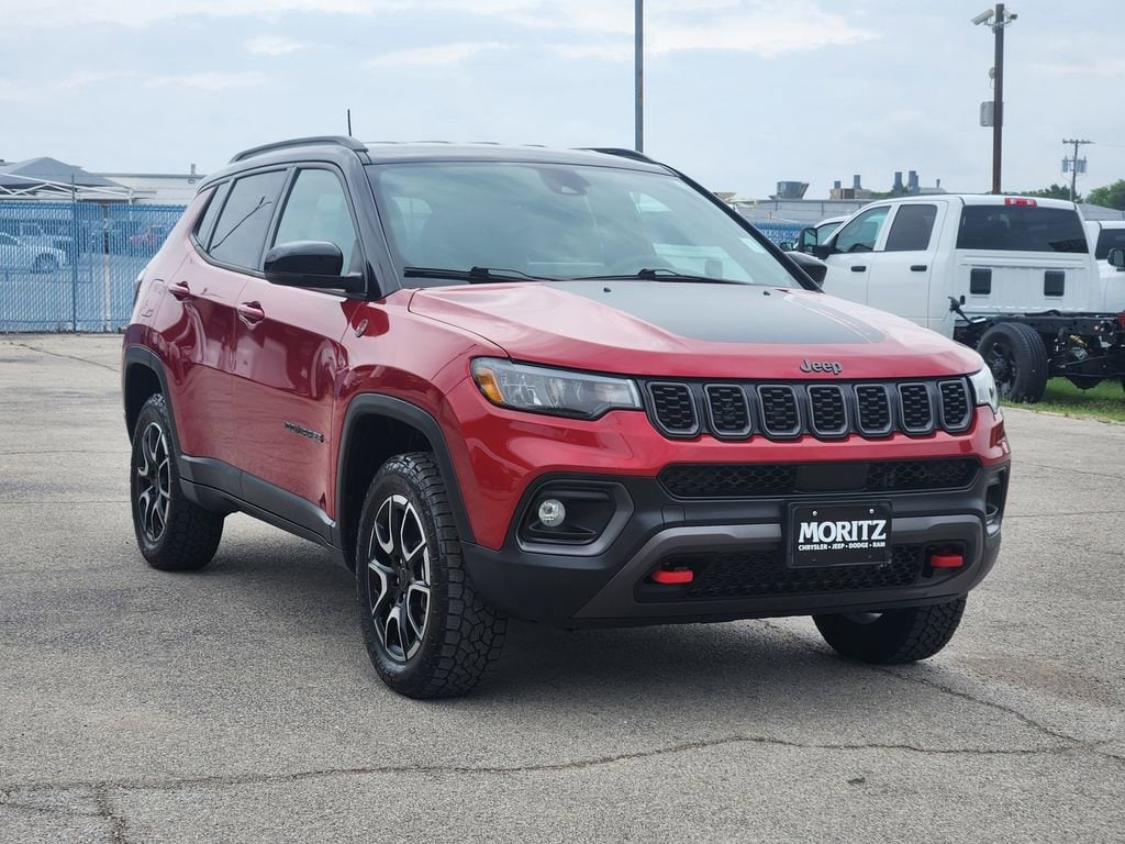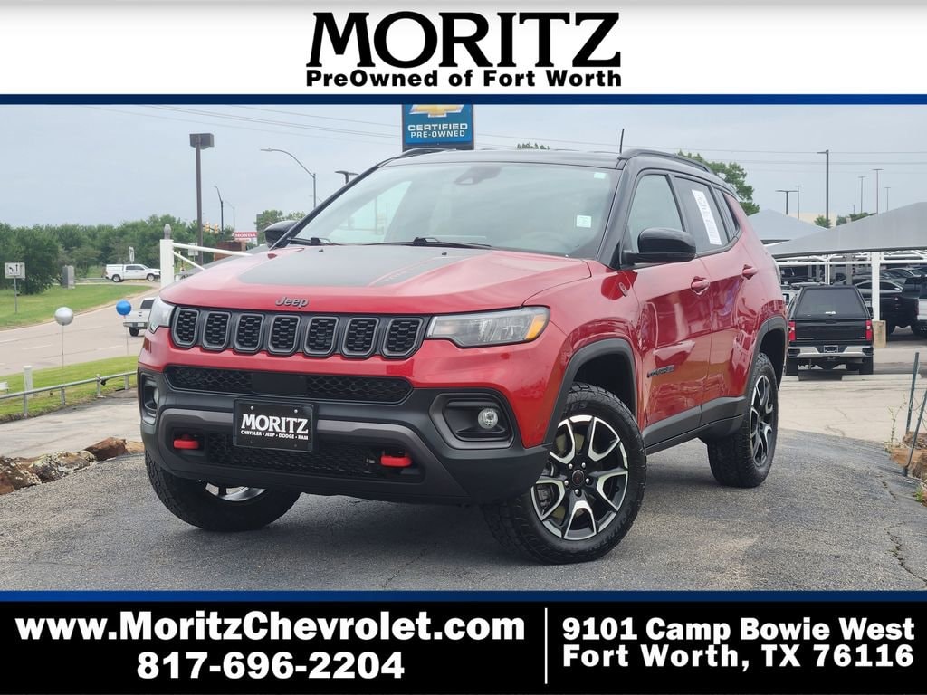 Certified. Red Hot Pearlcoat 2025 Jeep Compass Trailhawk 4WD 8-Speed Automatic 2.0L I4 DOHC Bluetooth, Backup Camera, The Moritz Promise LIMITED LIFETIME POWERTRAIN PROTECTION PLAN See dealer for details, 4WD, Alloy wheels, Apple CarPlay/Android Auto, Auto-dimming Rear-View mirror, Automatic temperature control, Brake assist, Electronic Stability Control, Four wheel independent suspension, Front anti-roll bar, Front Bucket Seats, Front fog lights, Fully automatic headlights, Illuminated entry, ParkView Rear Back-Up Camera, Premium Cloth/Leather Trim Bucket Seats, Remote keyless entry, Security system, Spoiler, Steering wheel mounted audio controls, Telescoping steering wheel, Traction control.Recent Arrival!Certification Program Details: 126-point inspection. Vehicle must be 10 model years old or newer, and the vehicle must have under 100,000 miles at the time of sale. Comes with 12 month/12,000 mile limited bumper to bumper warranty.