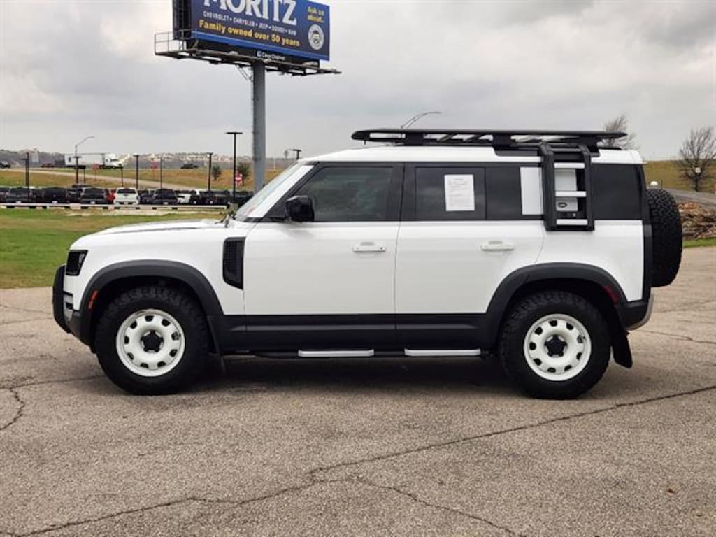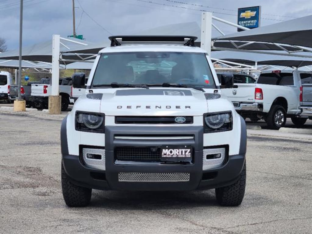 Certified. White 2023 Land Rover Defender 110 S 4WD 8-Speed Automatic 2.0L Turbocharged Bluetooth, Backup Camera, The Moritz Promise LIMITED LIFETIME POWERTRAIN PROTECTION PLAN See dealer for details, 11 Speakers, 12-Way Heated Electric Memory Seats, Alloy wheels, Apple CarPlay & Android Auto, Automatic temperature control, Brake assist, Electronic Stability Control, Exterior Parking Camera Rear, Four wheel independent suspension, Fully automatic headlights, Garage door transmitter: HomeLink, Grained Leather Seat Trim, Illuminated entry, Memory seat, Navigation system: Connected Navigation PIVI Pro, Security system, Speed-sensing steering, Steering wheel mounted audio controls, Telescoping steering wheel, Traction control. Certification Program Details: 126-point inspection. Vehicle must be 10 model years old or newer, and the vehicle must have under 100,000 miles at the time of sale. Comes with 12 month/12,000 mile limited bumper to bumper warranty.Certified Pre-Owned