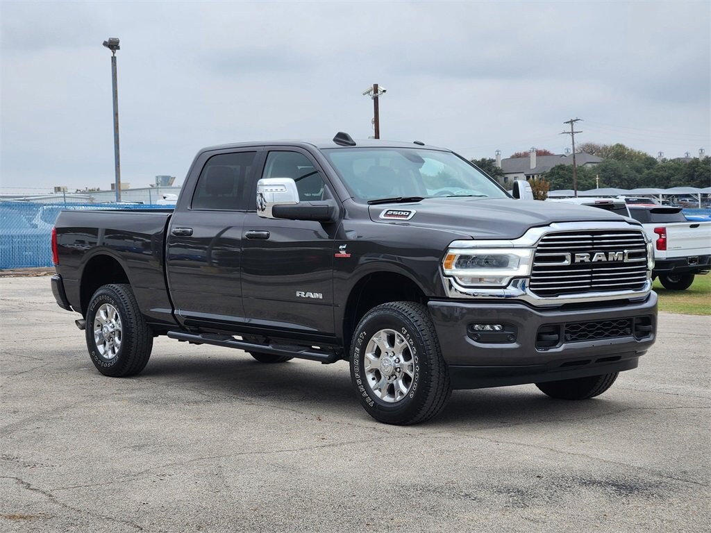 Granite Crystal Metallic Clearcoat 2024 Ram 2500 Laramie 4WD 6-Speed Automatic Cummins 6.7L I6 Turbodiesel Bluetooth, Backup Camera, The Moritz Promise LIMITED LIFETIME POWERTRAIN PROTECTION PLAN See dealer for details, 10 Speakers, 12 Touchscreen Display, 2nd Row In Floor Storage Bins, 4G LTE Wi-Fi Hot Spot, Alexa Built-In, Apple CarPlay, Apple CarPlay/Android Auto, Auto Adjust In Reverse Exterior Mirrors, Auto Dim Exterior Mirror, Auto High Beam Headlamp Control, Auto Power-Folding Mirrors, Auto-Dimming Exterior Passenger Mirror, Automatic temperature control, Blind Spot & Cross Path Detection, Brake assist, Center Hub, Chrome Exterior Mirrors, Connected Travel & Traffic Services, Connectivity - US/Canada, Disassociated Touchscreen Display, Electronic Stability Control, Electronically Controlled Throttle, Exterior Mirrors Courtesy Lamps, Exterior Mirrors w/Heating Element, Exterior Mirrors w/Memory, Exterior Mirrors w/Supplemental Signals, Foam Bottle Insert (Door Trim Panel), For Details, Visit DriveUconnect.com, For More Info, Call 800-643-2112, Forward & Reverse Utility Lights, Front anti-roll bar, Front LED Fog Lamps, Front Seat Back Map Pockets, Fully automatic headlights, Garage door transmitter, Global Telematics Box Module (TBM), Google Android Auto, GPS Antenna Input, GPS Navigation, HD Radio, Heated Front Seats, Illuminated entry, Integrated Voice Command w/Bluetooth, Laramie Level 1 Equipment Group, Leather Trim 40/20/40 Bench Seat, LED Reflector Headlamps, LED Tail Lamps, Mirror Running Lights, Navigation System, Off-Road Information Pages, ParkSense Front/Rear Park Assist System, ParkView Rear Back-Up Camera, Power Adjust Mirrors, Power Adjustable Convex Aux Mirrors, Power Adjustable Pedals w/Memory, Power driver seat, Power Heated Fold Telescopic Mirrors w/Memory, Power Telescoping Mirrors, Quick Order Package 2HH Laramie, Radio: Uconnect 5 Nav w/12.0 Display, Rain Sensitive Windshield Wipers, Rear Power Sliding Window, Rear step bumper, Rear Window Defroster, Remote keyless entry, Remote Tailgate Release, Security system, Selectable Tire Fill Alert, SiriusXM Radio Service, SiriusXM w/360L, Steering wheel mounted audio controls, Tip Start, Traction control, Trailer Tow Pages, Wheels: 18 x 8.0 Polished Aluminum.