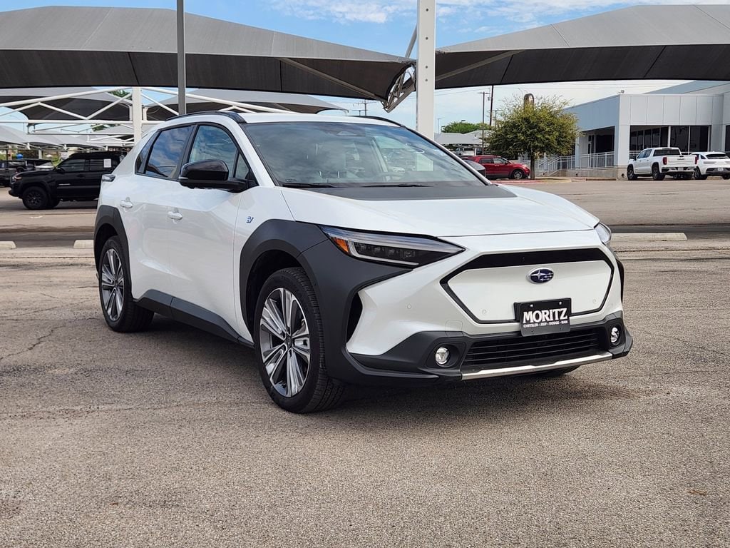 Certified. Cosmic White 2025 Subaru Solterra Limited AWD 1-Speed Automatic Electric Motor Bluetooth, Backup Camera, 11 Speakers, Alloy wheels, Apple CarPlay & Android Auto, Automatic temperature control, Electronic Stability Control, Exterior Parking Camera Rear, Four wheel independent suspension, Front anti-roll bar, Fully automatic headlights, Garage door transmitter: HomeLink, Heated Front Bucket Seats, Heated front seats, Illuminated entry, Memory seat, Navigation system: Cloud Navigation System (Subscription required), Power Liftgate, Rear anti-roll bar, Security system, Speed-sensing steering, Spoiler, StarTex Upholstery, Steering wheel mounted audio controls, Telescoping steering wheel, Traction control.Recent Arrival! Odometer is 2819 miles below market average!Certification Program Details: 126-point inspection. Vehicle must be 10 model years old or newer, and the vehicle must have under 100,000 miles at the time of sale. Comes with 12 month/12,000 mile limited bumper to bumper warranty.